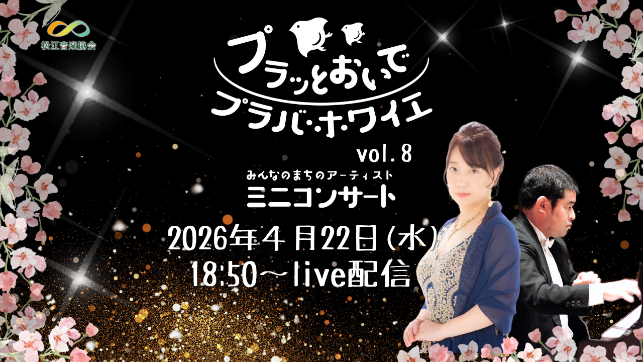 2026年04月26日 【YouTube】最新動画を配信(2026年4月) 最新動画を配信 今回の動画は、4月22日にプラバホールホワイエにて開催いたしました 「プラッとおいでプラバ・ホワイエvol.8」より、ライブ配信のアーカイブをお届けします🎶 (クリックするとYouTubeに移動します) https://youtube.com/live/RdY69cTiNs0 次へ